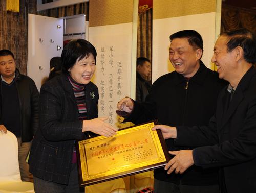 李树文同志为中央电视台主持人、全国红军小学建设工程爱心大使刘璐颁发“全国红军小学爱心公益个人奖”