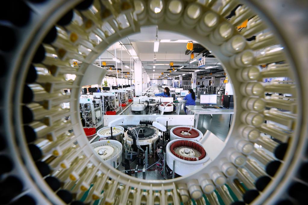 河北省迁安市一家生物科技企业的员工在生产线上工作(2021年12月26日摄)。新华社记者 牟宇 摄